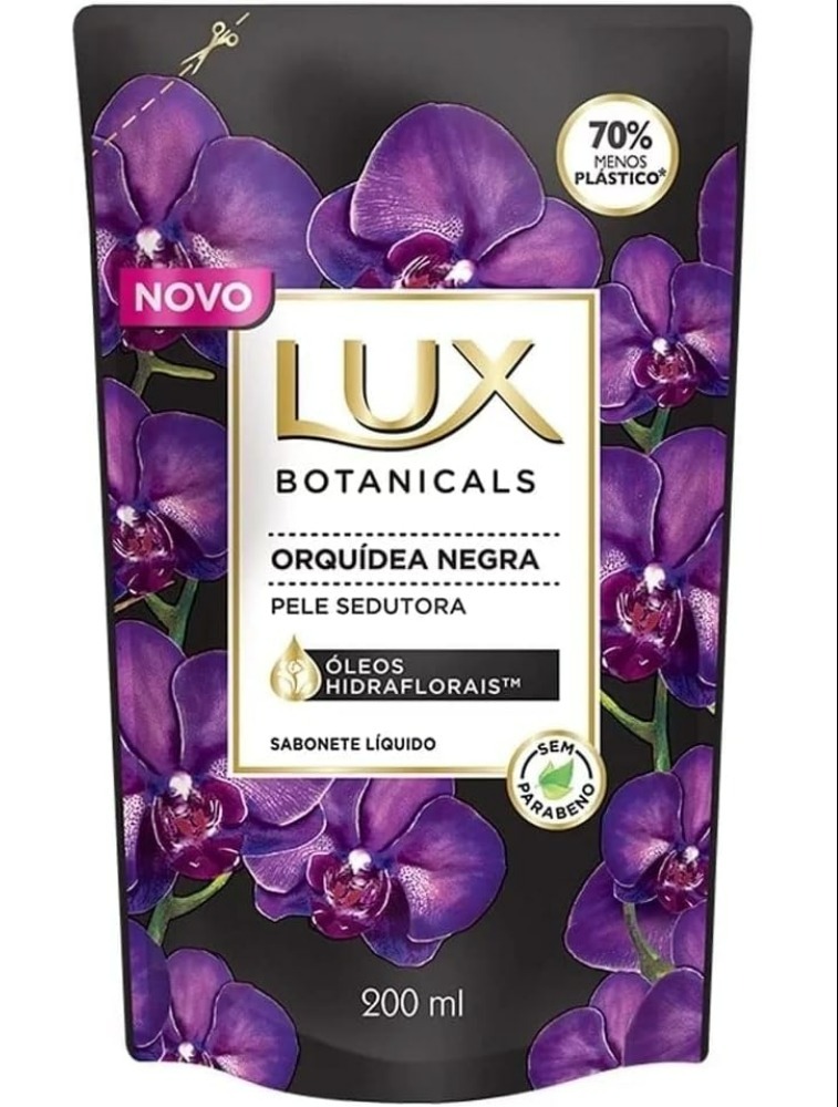 Conheça o refil de sabonete líquido Lux Botanicals Orquídea Negra 200ml. A fórmula é elaborada por uma combinação única e exclusiva de ingredientes botânicos naturais. Além disso, o sabonete foi especialmente produzido para proporcionar uma sensação aveludada na sua pele, tornando o banho o início de qualquer ritual de beleza, deixando a sua pele preparada para receber os próximos cuidados. A fragrância Orquídea Negra contém óleos hidraflorais que são uma mistura de extratos de flores e óleos essenciais que ajudam a proteger a sua pele contra o ressecamento, deixando-a delicadamente macia ao toque. Experimente também os outros formatos de Orquídea Negra: sabonete líquido para o corpo em garrafa e sabonete em barra. Além disso, a marca possui outras cinco opções de fragrâncias na linha: Rosas Francesas, Buquê de Jasmim, Flor de Lótus, Lavanda e Flor de Verbena. A coleção é indicada para todos os tipos de pele, além do produto ter uma nova embalagem econômica para você despejar o seu conteúdo em um frasco de Lux Botanicals. Transforme a sua experiência de banho em um momento único e prazeroso com os sabonetes de Lux. Sinta a espuma cremosa e delicada fragrância de Lux Orquídea Negra tornando a sua pele irresistivelmente sedutora.