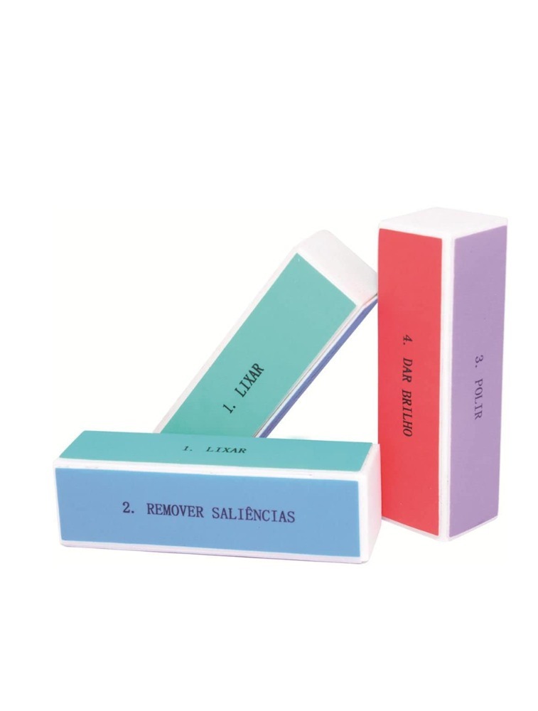 Posicionar o bloco na exremidade da unha. - Inicie sempre pelo lado modelador que é o mais aespero. - Trabalhando um lado da unha, cntinuando com movimentos suaves até o outro lado. - Da mesma maneira, finalize dando o acabamento com o lado mais suave do bloco. Assim qualque ponta ou desnível sera elimninado.