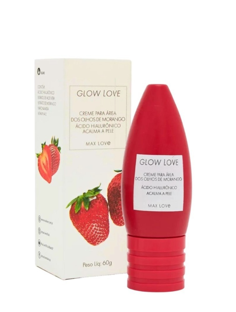O Creme Vegano para Área dos Olhos Glow Love Morango Max Love é um verdadeiro cuidado diário que revitaliza e ilumina o olhar. Sua fórmula poderosa, enriquecida com ácido hialurônico, aloe vera, niacinamida, vitamina E e extrato de morango, hidrata profundamente, suaviza linhas finas e acalma a pele sensível ao redor dos olhos, deixando-a mais firme, radiante e protegida. Uma combinação perfeita de frescor e eficácia!