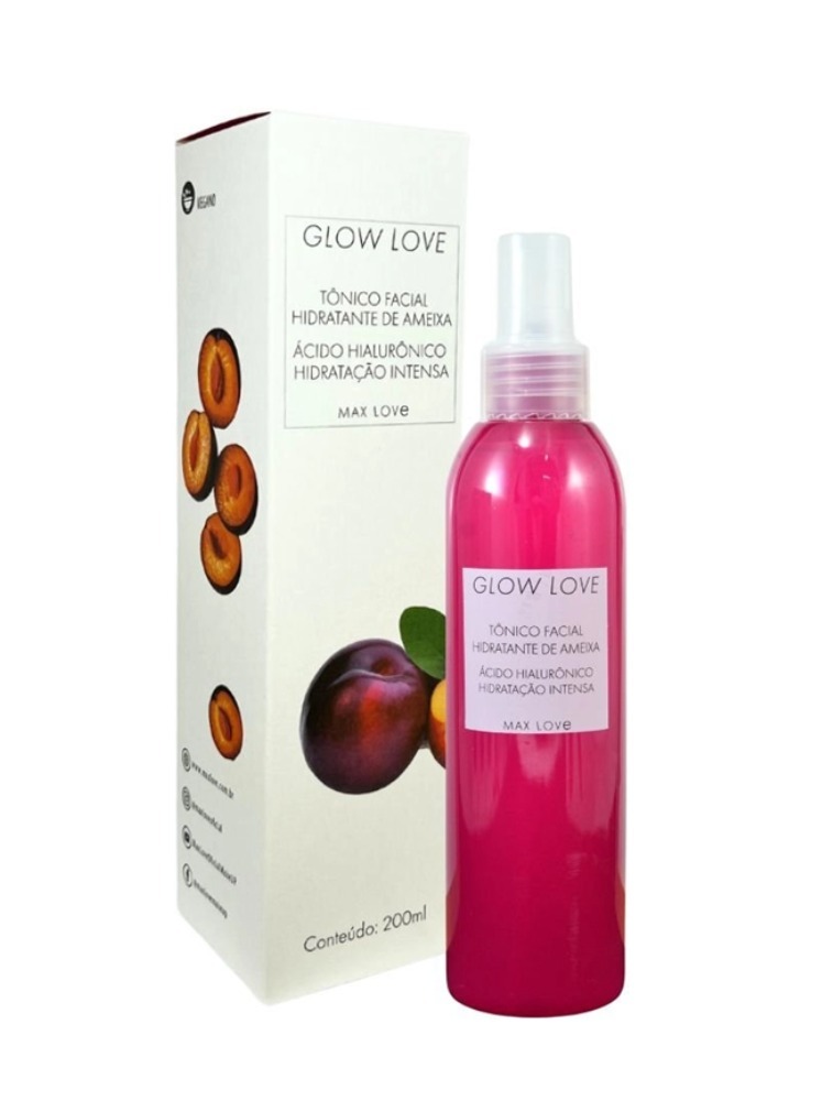 O tônico facial vegano Glow Love hidratante de ameixa Max Love proporciona hidratação intensa e cuidado diário para a pele. Com ácido hialurônico, extratos de aloe vera e ameixa, niacinamida e vitamina E, ajuda a revitalizar, suavizar e manter o equilíbrio da pele.
