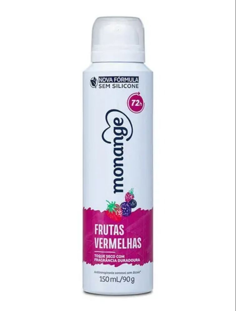 Despertando as melhores sensações em quem o usa, o Desodorante Aerossol Antitranspirante Monange Feminino Frutas Vermelhas 150ml possui uma fragrância jovem e moderna. Além disso, não contém álcool, hidrata e nutre a sua pele até a segunda camada da pele, mantendo as suas axilas bonitas e sem irritação. Também protege por 48 horas, evitando o mau odor, o que significa que é menos propenso a causar irritações na pele. O desodorante aerossol feminino é um produto que pode ser usado por mulheres de todas as idades. Ele é ideal para quem busca proteção contra o suor e o odor corporal, além de uma fragrância suave e agradável.