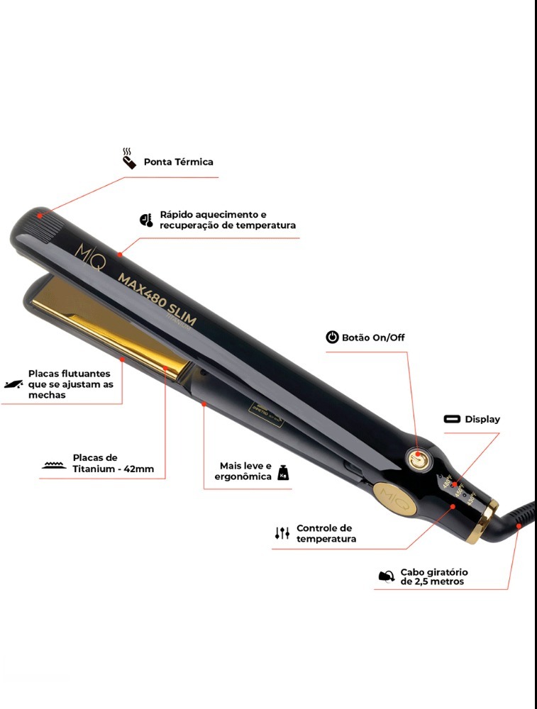 MQ - Prancha de Cabelo Titanium Max Slim480 Profissional Bivolt