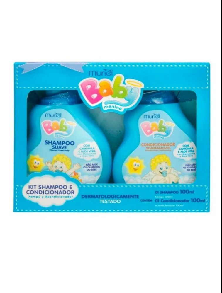 O Kit Muriel Baby Menino é composto por produtos dermatologicamente testados que cuidam delicadamente dos cabelos do bebê. O Kit contém: 01 Shampoo 100ml , 01 Condicionador 100ml e 01 Embalagem prática com lindas imagens para decorar o interruptor do quarto do bebê.
