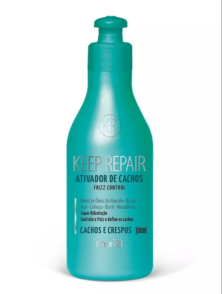 ATIVADOR CONDICIONANTE KEEP REPAIR MURIEL CACHOS CRESPOS 300ML Cachos e Crespos ? O formato espiralado dos fios aliado a uma disposição imperfeita das cutículas capilares impede que o óleo natural produzido por nosso organismo percorra toda a extensão do fio do cabelo e ainda fique acumulado no couro cabeludo. A baixa hidratação deixa os cabelos opacos e quebradiços, com muito frizz e embaraçados. Esta é a característica mais comum e natural dos cabelos cacheados e crespos e alguns tipos de ondulados. Esses efeitos ainda podem ser potencializados pela idade, exposição excessiva ao sol, água do mar ou piscina, ação mecânica, alisamentos químicos, tinturas, etc. Tudo isso sugere cuidados diários e contínuos, com produtos para todos os momentos ou ocasiões. Nosso centro tecnológico desenvolveu uma fórmula completa de produtos para os cabelos de curvas 2, 3, e 4 e que visa uma reposição lipídica robusta e eficiente, graças a combinação dos óleos de Açaí, Macadâmia, Coco, Abacate, Linhaça , Girassol e Rícino, que se complementam com grande harmonia. Temos ainda o Glicerol, que irá absorver e manter a necessária porção hídrica capilar e para reter tudo isso nos fios temos a Ceramida que irá concentrar toda a porção hidrolipídica adicionada dentro dos fios. Finalizamos esta fórmula com o exclusivo Silicon Selector®, que é uma associação de silicones solúveis que possui o efeito ativa com o calor (+) ao mesmo tempo que protege do calor (-) e uma fragrância especial. Esta linha também é ideal para quem está iniciando a transição capilar.