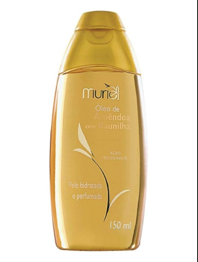 Muriel Óleo de Amêndoa com Baunilha 150ml: Óleo corporal perfumado com amêndoa e baunilha, hidrata profundamente e deixa a pele com um aroma doce e envolvente.