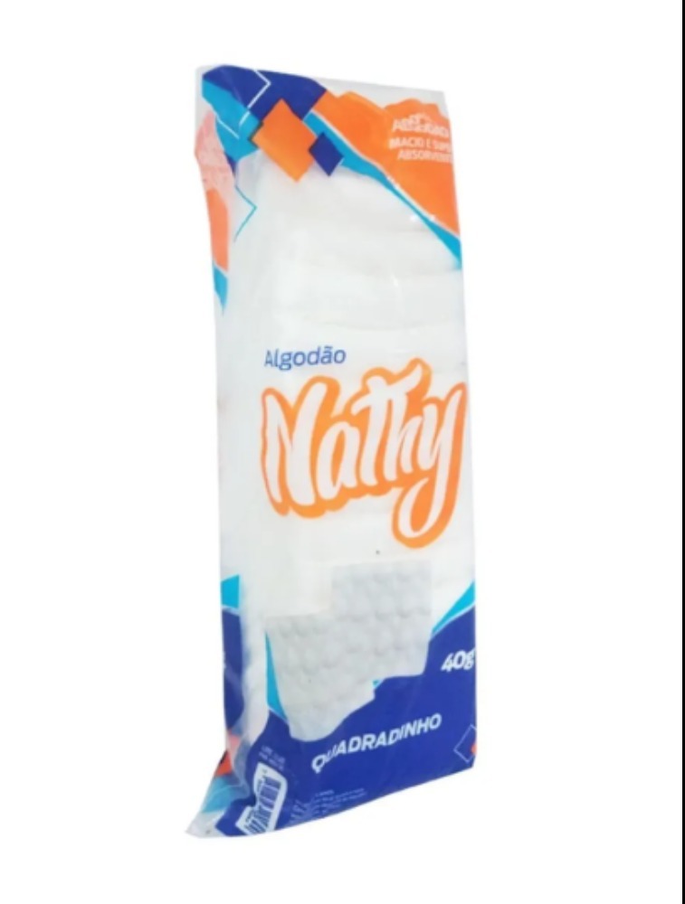 O modelo Algodão Quadradinho 40g é elaborado com fibras 100% algodão, alvejado e isento de produtos químicos tais como: alvejante óptico, corantes corretivos e quaisquer outros que possa agredir a pele. O Algodão Nathy Quadradinho possui excelente formato com tamanho ideal para uso. Próprio para remoção de maquiagem, esmalte e cuidados diário com o bebê.