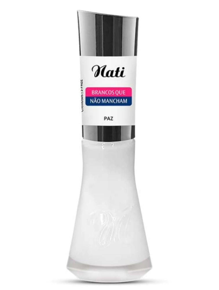 Esmalte Nati Cremoso 8ml - Paz Possui textura leve proporcionando secagem rápida e longa duração e tem um pincel FLAT que facilita a aplicação de forma precisa.