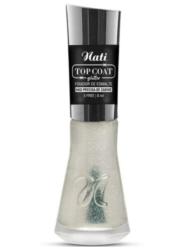 Esmalte Nati 8ml - Top Coat Glitter Possui textura leve proporcionando secagem rápida e longa duração e tem um pincel FLAT que facilita a aplicação de forma precisa.