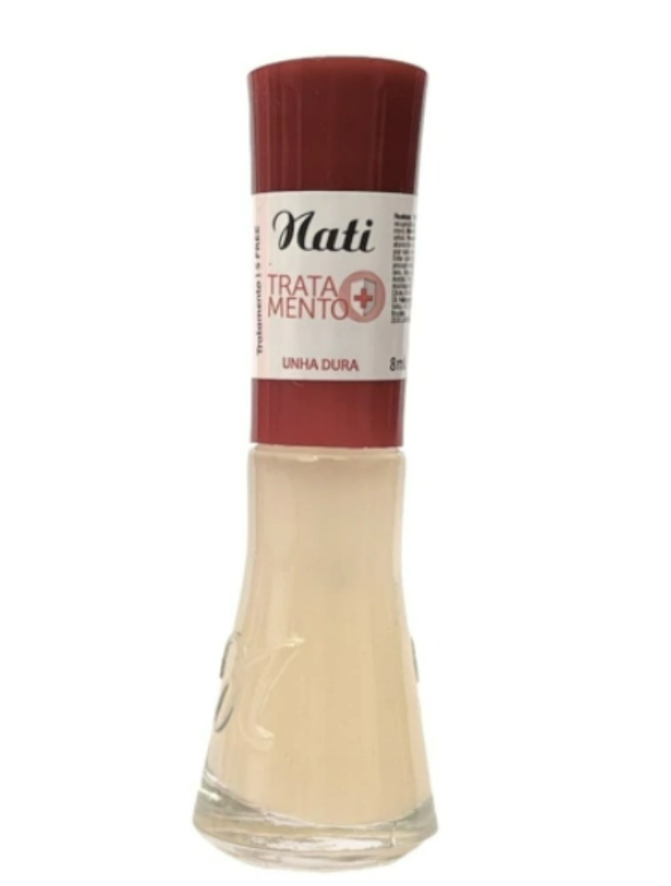 A linha de esmaltes de tratamento da Nati contém em suas fórmulas ativos que auxiliam no fortalecimento, crescimento, tratamento e hidratação das unhas. Amenizam possíveis quebras e descamações, proporcionam excelente cobertura e alto brilho. Além de possibilitar o uso em unhas esmaltadas ou naturais.
