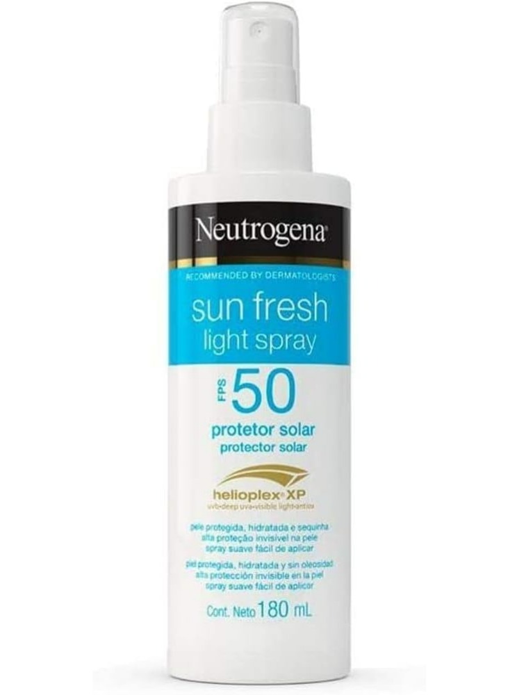 Neutrogena sun fresh light spray fps 50 - previne fotoenvelhecimento e manchas causadas pelo sol - hidratação o dia todo - rápida absorção. Oil free - muito resistente à água e ao suor - não deixa resíduo branco na pele
