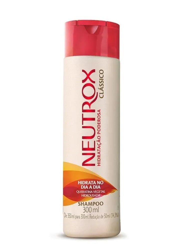 Shampoo Neutrox Clássico. Hidrata no dia a dia. Formula com queratina vegetal hidrolisada: sela as cutículas, deixando os cabelos hidratados, macios e naturalmente bonitos.