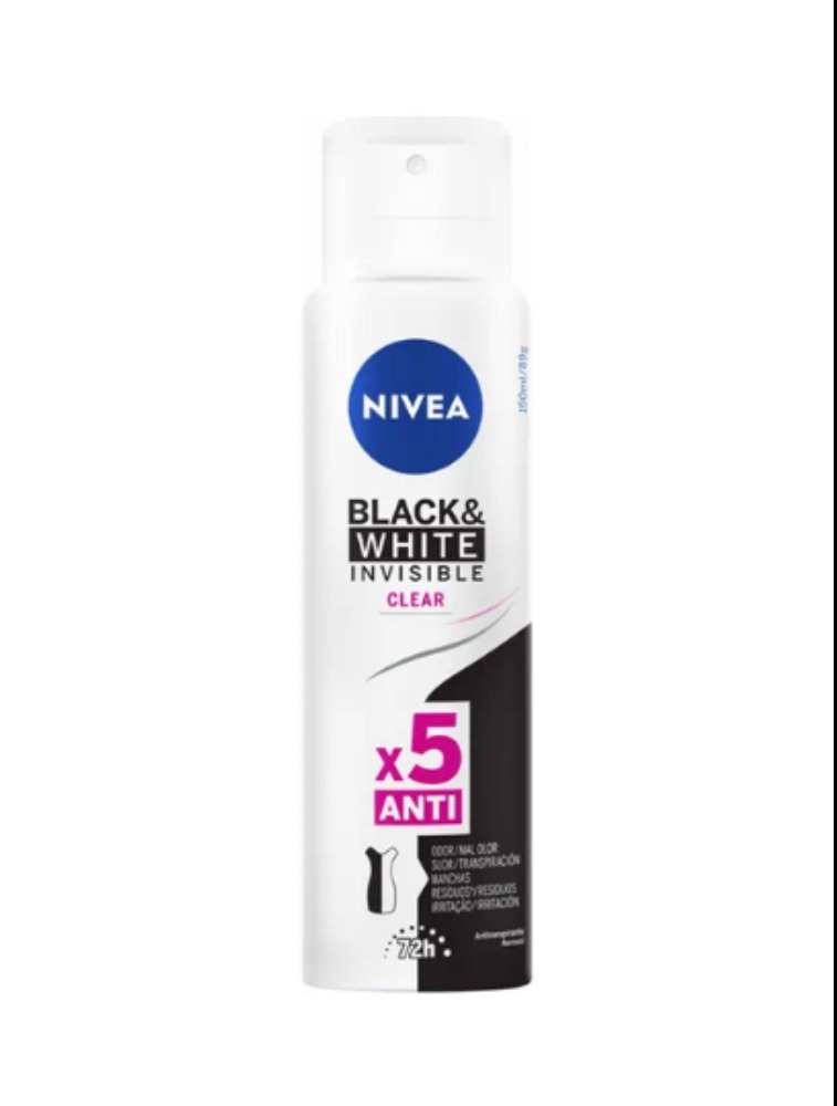 Além de oferecer uma proteção eficaz por 72 horas, NIVEA Desodorante Antitranspirante Aerossol Invisible Black & White Clear mantém você livre de manchas, suor e mau odor.