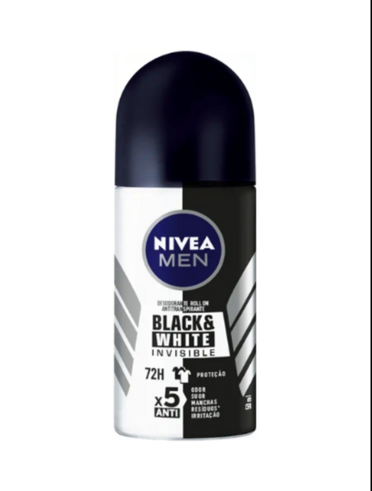 Desodorante roll on NIVEA MEN Invisible Black & White que refresca, protege por 72h e evita manchas nas roupas. Você livre de manchas, suor e mau odor.