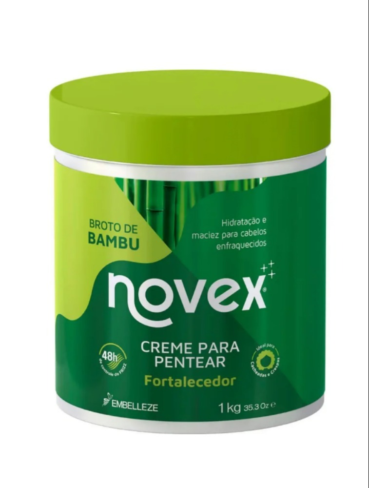 Creme para pentear indicado para cabelos enfraquecidos, cacheados, crespos e ondulados. Embelleze Novex Broto de Bambu penetra profundamente na fibra capilar, trata, hidrata, nutre e fortalece os cabelos.