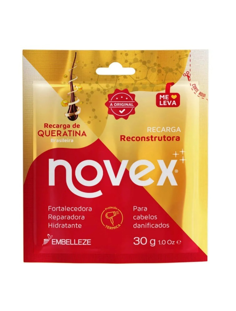 Cansado de cabelos fracos, quebradiços e sem vida? Experimente o Tratamento Reconstrutor Recarga de Queratina Brasileira da Novex e sinta a diferença em seus fios desde a primeira aplicação!