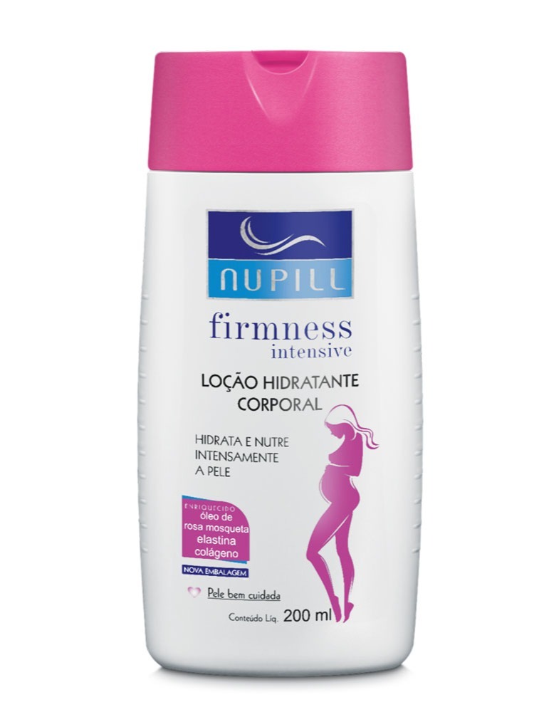 Loção hidratante rosa mosqueta Nupill auxilia no tratamento e prevenção de estrias e flacidez. Contém óleo de rosa mosqueta elastina e colágeno.