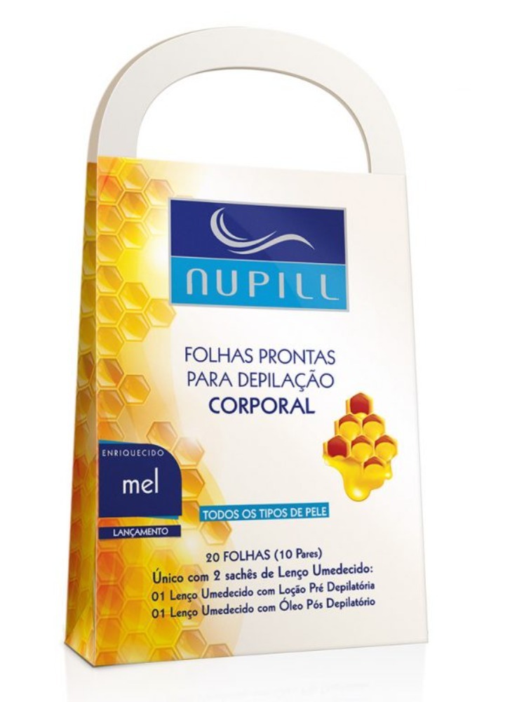 As folhas prontas Nupill para depilação corporal são enriquecidas com mel de abelhas, e possuem ação antibacteriana e cicatrizante, retiram os pelos pela raiz, retardando o crescimento. Proporcionam mais praticidade de uso e eficácia como a depilação profissional, para você fazer em casa mesmo com muita facilidade.