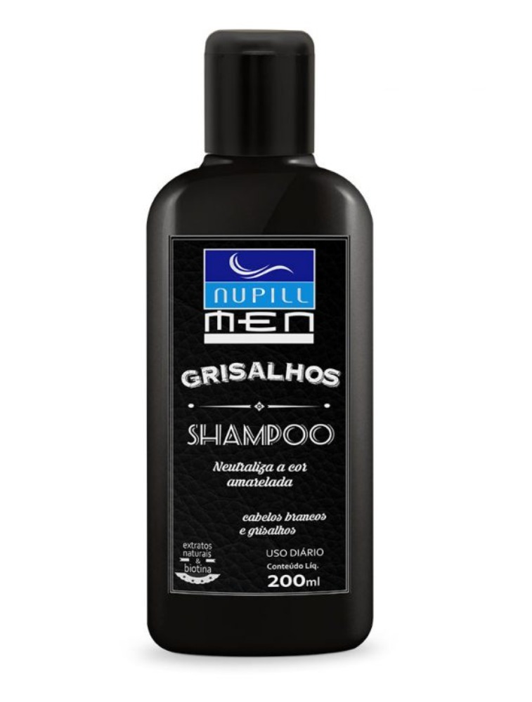 Shampoo Nupill Men para cabelos Brancos e Grisalhos é o produto ideal para manter os cabelos brancos e grisalhos livre de coloração amarelada e mais realçados.