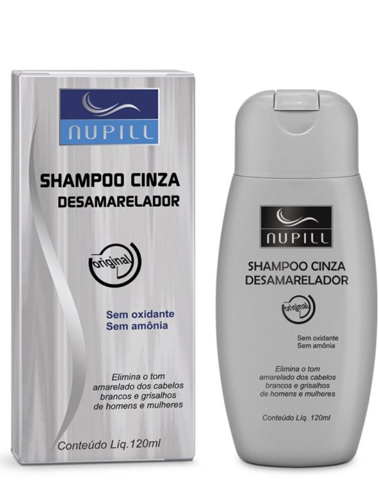 O Shampoo cinza desamarelador Nupill neutraliza o tom amarelado dos seus cabelos logo na primeira aplicação. Possui pigmentação intensa azulada eliminando o amarelado dos fios, proporcionando cabelos brancos mais neutros e louros mais puros.