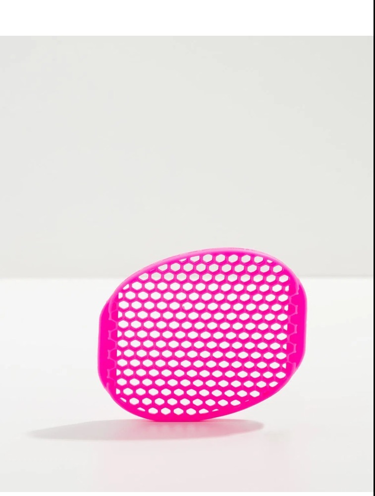 Esponja para limpeza de pele. Com um formato que lembra um favo de mel, esta esponja de silicone promove uma limpeza profunda na pele, ao remover células mortas e ajudar a desobstruir os poros.