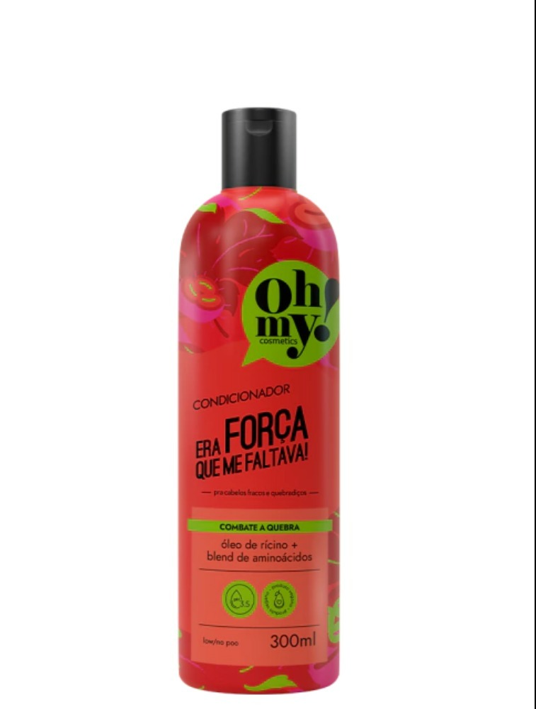 MODO DE USAR: é muito fácil! Com o cabelo molhado, espalhe o condicionador, deslizando com as mãos do meio para baixo. Espere um minutinho e enxágue. Quer um resultado ainda mais incrível? Use toda a linha Era força que me faltava! Oh My!