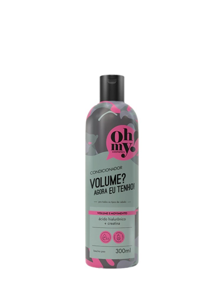 MODO DE USAR: é muito fácil! Com o cabelo molhado, espalhe o condicionador, deslizando com as mãos do meio pra baixo. Espere um minutinho e enxágue. O uso do condicionador também é indicado após a máscara, pra promover maior selamento das cutículas. Quer um resultado ainda mais incrível? Use toda a linha Volume? Agora eu tenho! Oh My!