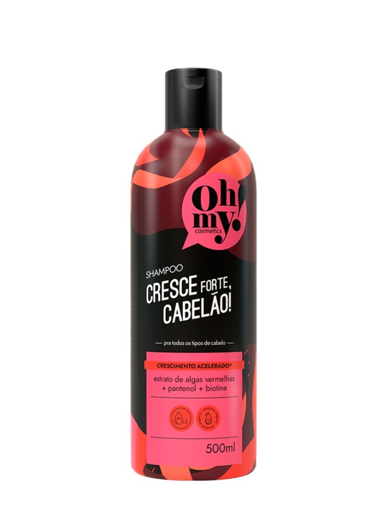 A linha Cresce forte, cabelão! foi desenvolvida pra estimular o crescimento saudável e forte dos fios. Não tem mágica, tem fórmula poderosa, com extrato de algas vermelhas, pantenol e biotina, pra trazer resultado de verdade! O nosso shampoo limpa e cuida do couro cabeludo!