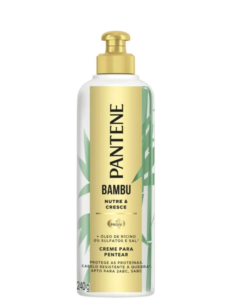 A coleção Pantene Bambu Nutre e Cresce foi criada para ajudar no ciclo da quebra de cabelo, nutrindo desde as raízes, para o cabelo crescer mais forte. Creme para pentear Bambu um tratamento profundo com uma formulação leve sem enxágue, contém extrato de bambu e óleo de rícino para pontas danificadas. Ajuda a desembaraçar para evitar a necessidade de cortar seu cabelo. Esse produto contém 0% de sulfatos e óleo mineral. O poder de combate à quebra de Pantene Bambu está disponível em produtos de toda a linha, shampoo, condicionador, creme para pentear, máscara nutritiva. Agora, você pode combater a quebra porque um Cabelo Pantene diz meu crescimento não tem limites!