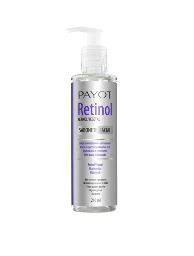 Sabonete facial líquido. Payot Retinol promove uma limpeza intensa sem ressecar e equilibra a oleosidade da pele.