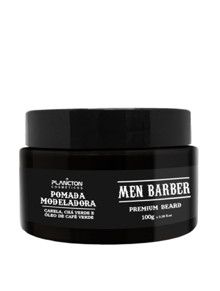 A Plancton Professional desenvolveu a linha MEN BARBER com um mix de ativos ricos em nutrição, brilho e combate ao frizz. A união de Óleo de Café Verde e Canela, na POMADA MODELADORA atua modelando e fixando os fios, além de fazer recarga de brilho.
