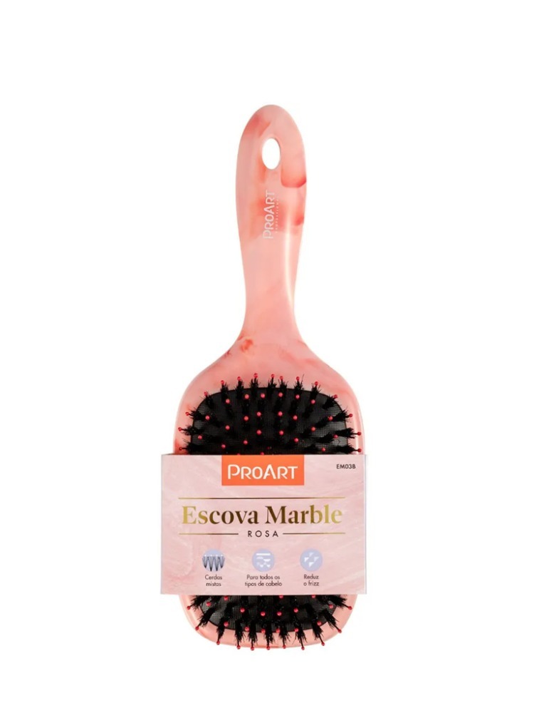 PROART ESCOVA RAQUETE MISTA MARBLE ROSA