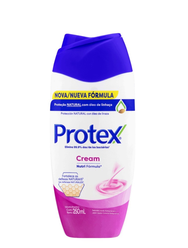 Sabonete Líquido Antibacteriano Cream Protex Frasco 250ml Protex® Cream oferece a fragrância delicada e a hidratação que você gosta, com a proteção antibacteriana que você precisa. Para a boa saúde da sua pele. Elimina 99,9% das bactérias da pele. Cria uma barreira de proteção que ajuda a prevenir a proliferação de bactérias.