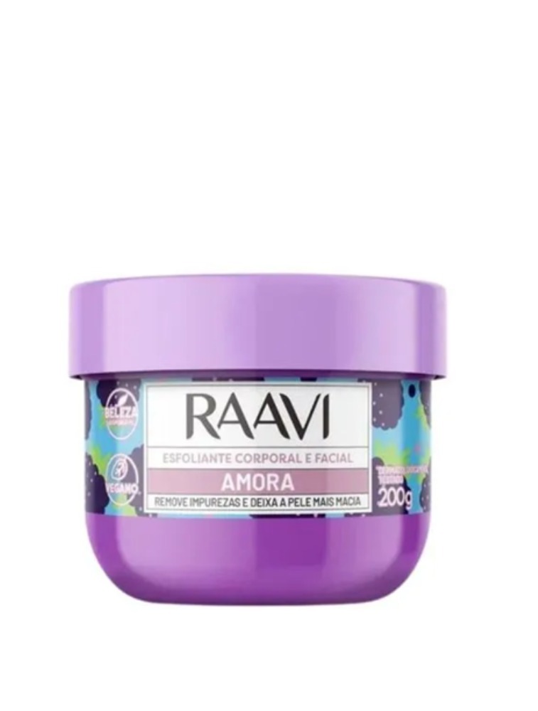 Renove sua pele com a delicadeza e o poder da natureza usando o Esfoliante Corporal e Facial Amora Raavi, especialmente formulado para deixar sua pele renovada, nutrida e irresistivelmente perfumada. Este produto único, com 200g, é a escolha perfeita para quem busca cuidado e respeito pela pele e pelo meio ambiente.Características principais:Pele Renovada e Perfumada: Enriquecido com extrato natural de amora e batata roxa, este esfoliante não apenas remove impurezas e células mortas, mas também deixa um aroma suave e agradável que encanta os sentidos, trazendo a sensação de frescor e limpeza. Livre de Corantes: Com a promessa de cuidado e respeito à sua pele, este produto é livre de corantes artificiais, garantindo uma experiência de esfoliação natural e segura, adequada até para as peles mais sensíveis. Esferas Naturais de Esfoliação: As esferas naturais presentes na formulação promovem uma esfoliação eficaz sem agredir a pele, permitindo uma renovação celular saudável e deixando a pele macia e lisa ao toque. Produto 100% Vegano