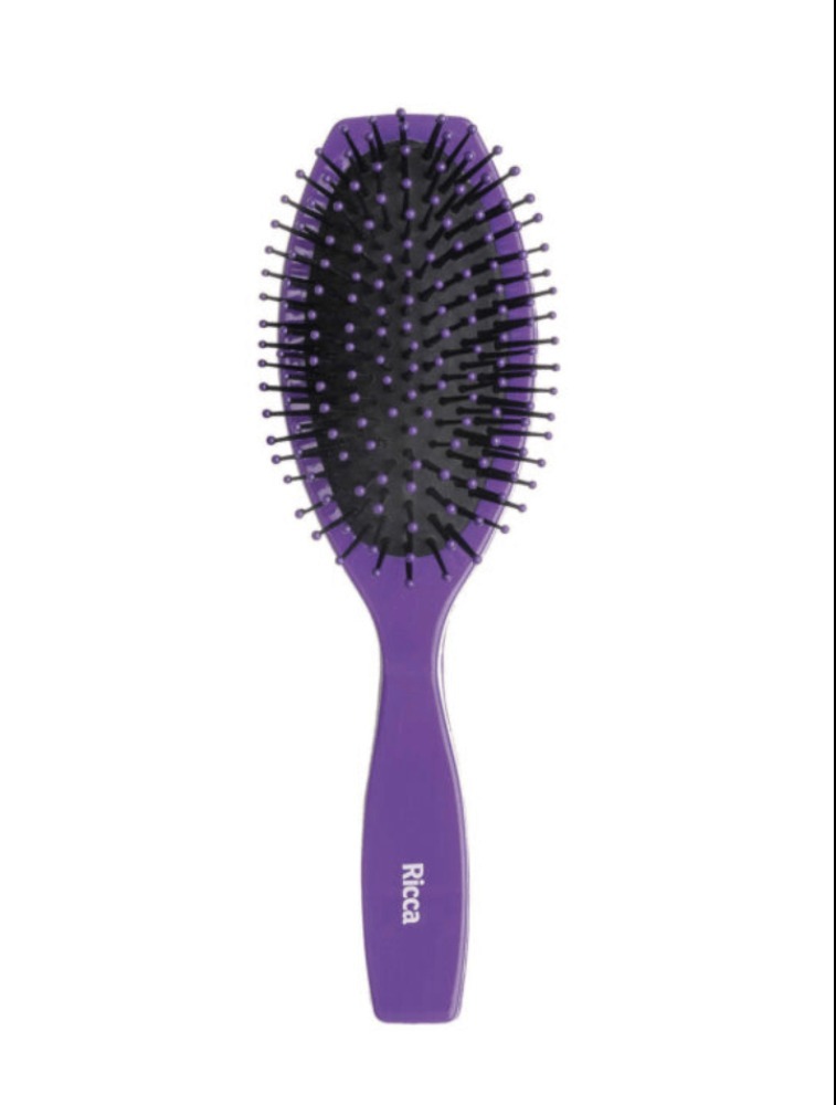 Escova De Cabelo Ricca Oval REF:186ATENÇÃO: Cores sortidas. Não é possivel selecionar a cor do produto.Escova de cabelo com base almofadada que proporcionam uma escovação muito mais confortável e cerdas de nylon com pontas protetoras que massageiam o couro cabeludo.