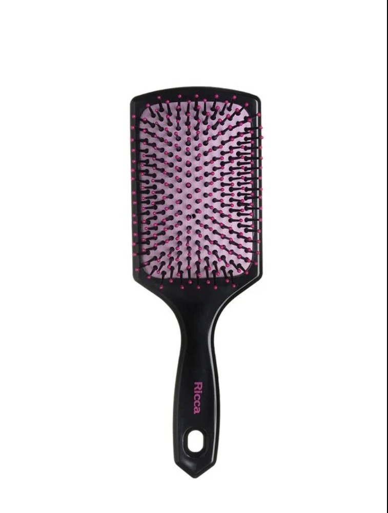 Escova Raquete com acabamento preto, ideal para desembaraçar os cabelos.