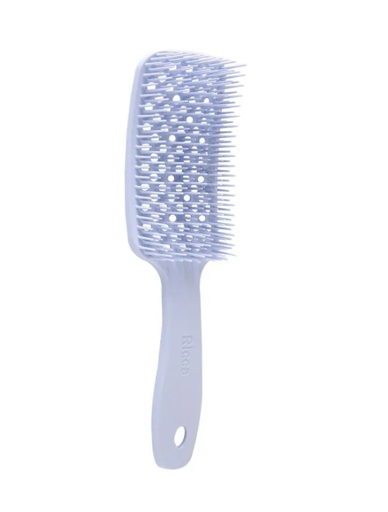 Além de ser eficiente no desembaraço de cabelos secos ou molhados, a estrutura flexível da escova Ricca Flex Candy Lavanda acompanha o contorno da cabeça, oferecendo maior conforto durante o uso. As cerdas de dupla altura deslizam facilmente pelos fios, reduzindo a quebra e mantendo a saúde do cabelo.