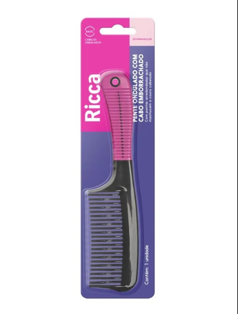 Pente com dentes ondulados e cabo emborrachado para mais conforto e precisão, ideal para pentear e desembaraçar todos os tipos de cabelo.