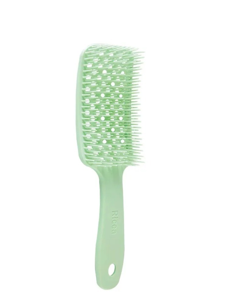 Além de ser eficiente no desembaraço de cabelos secos ou molhados, a estrutura flexível da escova Ricca Flex Candy Menta acompanha o contorno da cabeça, oferecendo maior conforto durante o uso. As cerdas de dupla altura deslizam facilmente pelos fios, reduzindo a quebra e mantendo a saúde do cabelo.
