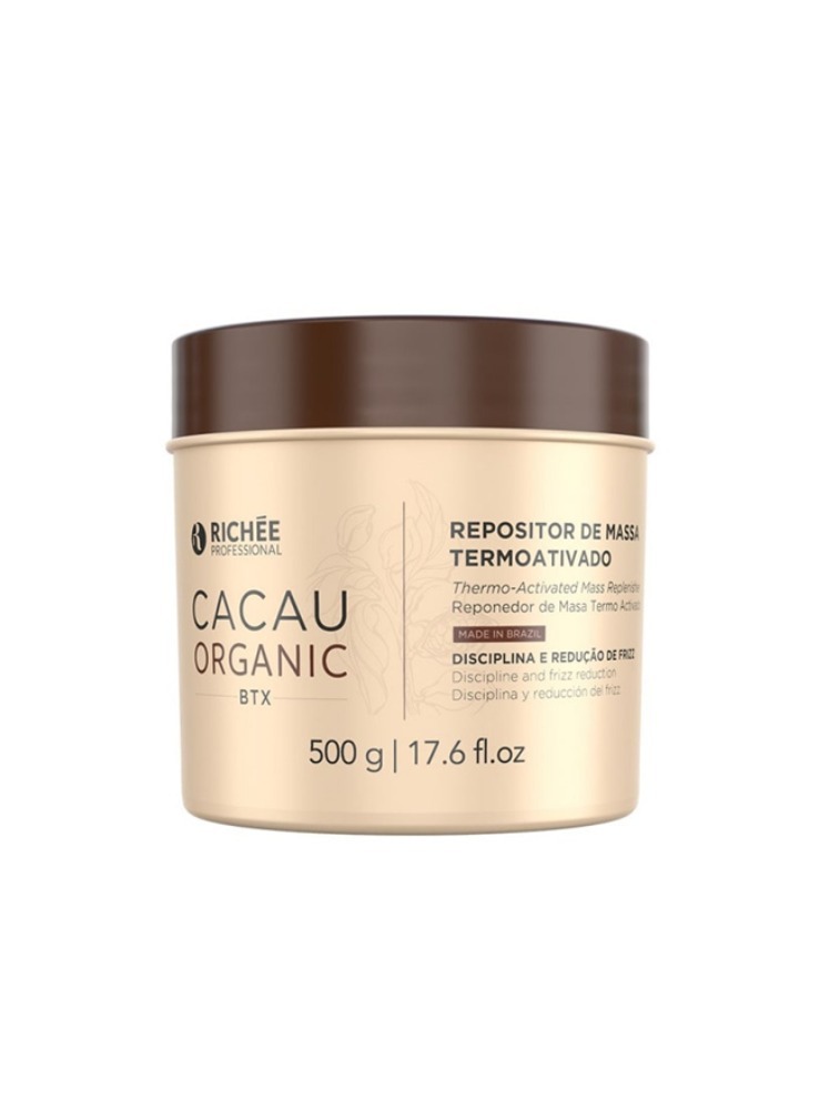 Cacau Organic BTX Repositor de Massa devolve a massa perdida, restaura e reduz o volume. Formulada para atuar na reposição de lipídios, nutrindo e recuperando os cabelos secos e ressecados. Devolve os nutrientes que auxiliam no reforço estrutural dos fios, deixando-os macios, sem frizz, com toque suave e brilho intenso.