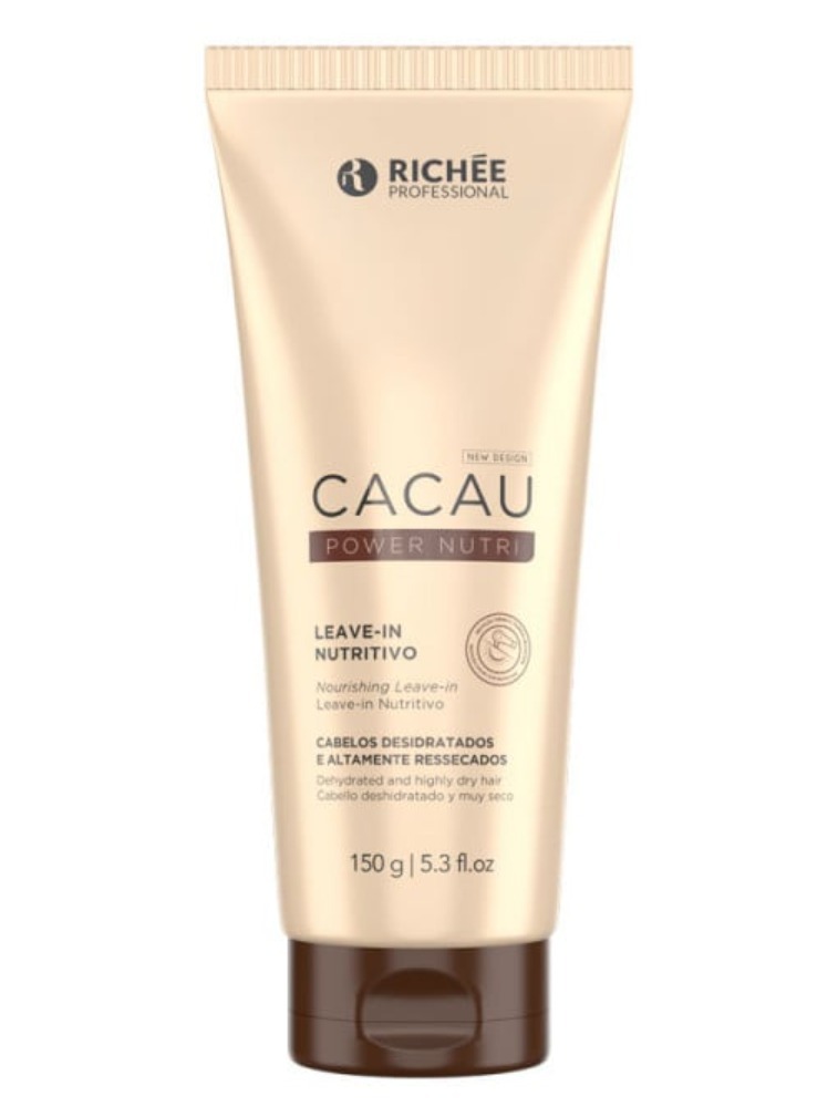 Modo de usar: Colocar uma pequena quantidade de Leave-in Cacau Power Nutri nas mãos e espalhar uniformemente por todo o cabelo, modelando como desejar.