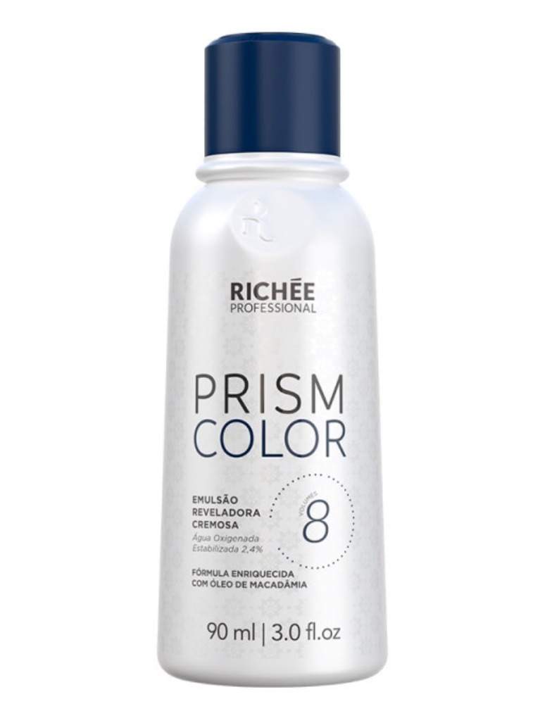 Prismcolor Emulsão Reveladora 8 Vol. possui fórmula enriquecida com Óleo de Macadâmia e agentes hidratantes e emolientes, proporciona uniformidade das cores. Fórmula segura que preserva a integridade dos fios. Aumenta a durabilidade da cor, conferindo um resultado perfeito e ação condicionante.
