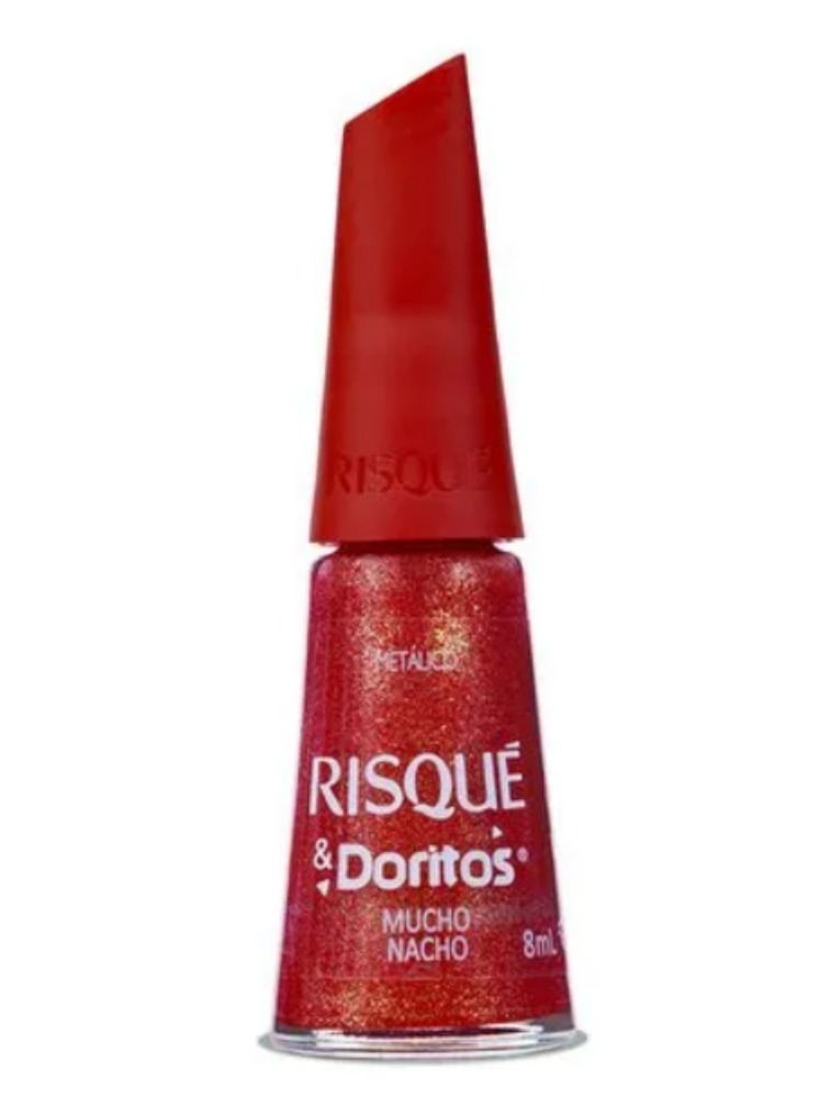 Inspirado no clássico Doritos Queijo Nacho, esse esmalte vermelho metálico é como aquela tortilha perfeita: crocante, vibrante e cheio de sabor! Com “Mucho Nacho” você vai temperar seu estilo com uma explosão de cor e brilho. Preparada?