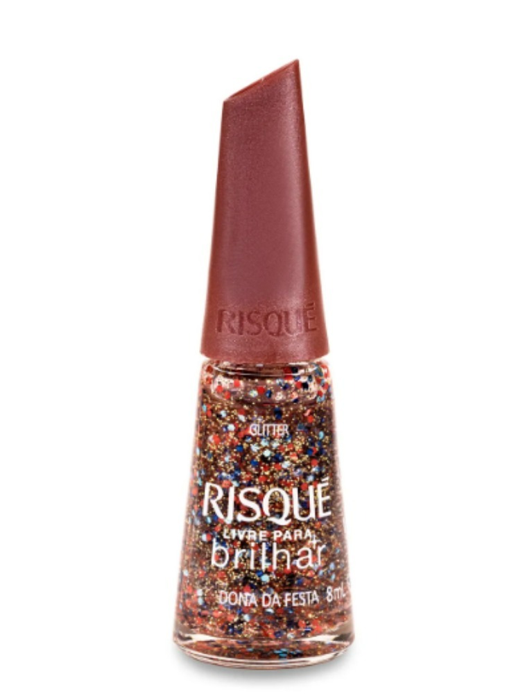 A nova coleção Risqué Livre Para Brilhar traz efeitos e cores como ferramentas para a autoexpressão, dentro de novas tendências e ultrapassando as barreiras de mainstream. São 5 esmaltes com acabamento em glitter e 1 com cobertura metálica. O Esmalte Risqué Dona da Festa apresenta lindas partículas de glitter com tons de laranja, azul e dourado, é de secagem rápida e com ultra brilho, além de ter longa duração nas unhas. Todos os esmaltes são cruelty-free e com fórmula hipoalergênica.