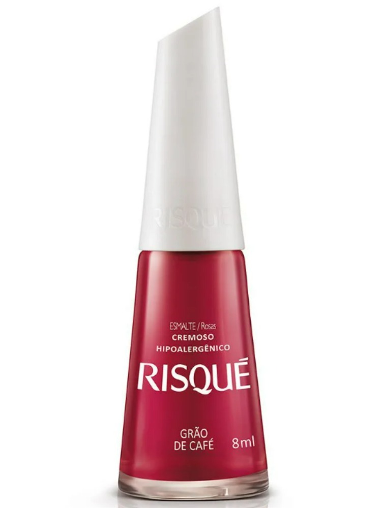 O Esmalte Risqué Grão de Café é cor de rosa. Ele apresenta textura e cobertura uniforme, rápida secagem, longa duração e fórmula hipoalergênica, livre de componentes que costumam causar alergias, o esmalte perfeito para os cuidados diários.