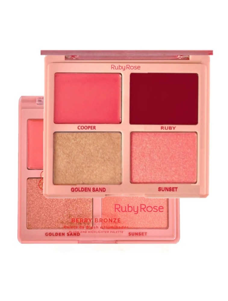 RUBY ROSE LINHA ROSA - PALETA DE BLUSH E ILUMINADOR HB M1001-G2