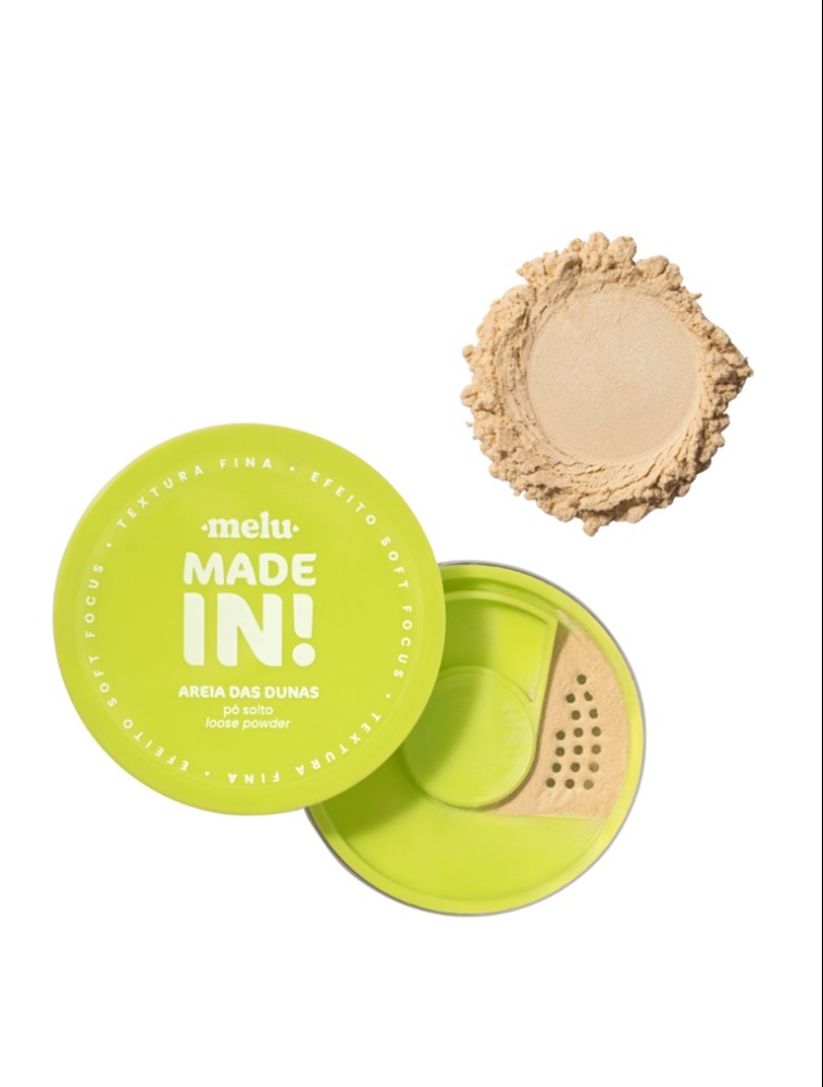 Descubra o Pó Solto Areia das Dunas Made In - Melu by Ruby Rose, seu novo aliado para uma maquiagem perfeita e duradoura. Com textura aveludada e ultrafina, este pó proporciona um acabamento natural e sofisticado, que suaviza imperfeições com efeito soft focus.