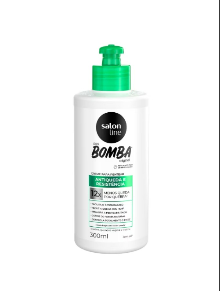 O Creme para pentear S.O.S Bomba Antiqueda e Resistência garante 12x menos queda por quebra, facilita o desembaraço, melhora a penteabilidade dos fios, define de forma natural e controla totalmente o frizz. Aprovado por dermatologista.