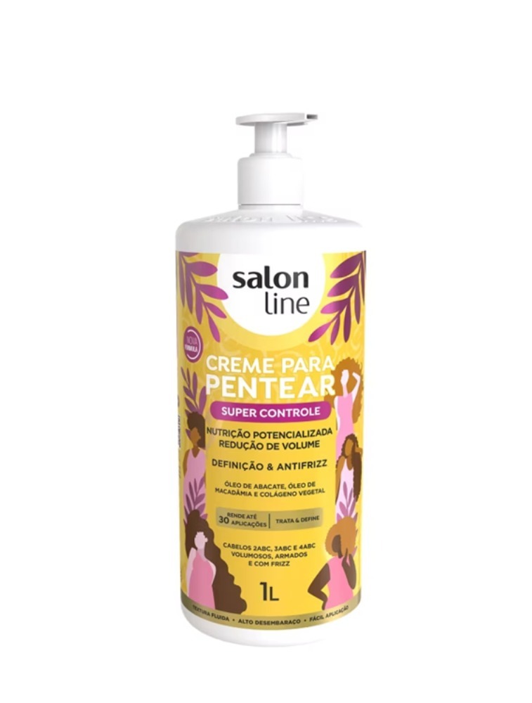 O Creme para Pentear Super Controle Salon Line 1L promove controle de frizz, redução de volume, brilho, maciez e, claro, muita definição. Além disso, ajuda a selar as pontas, restaurar e nutrir o cabelo.