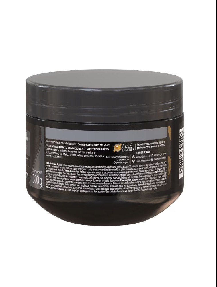 A Máscara Meu Liso Matizador Preto garante regeneração da fibra, hidratação intensa, maciez, nutrição e reparação dos cabelos danificados. Além disso, traz brilho intenso e ajuda a manter a cor viva dos fios.
