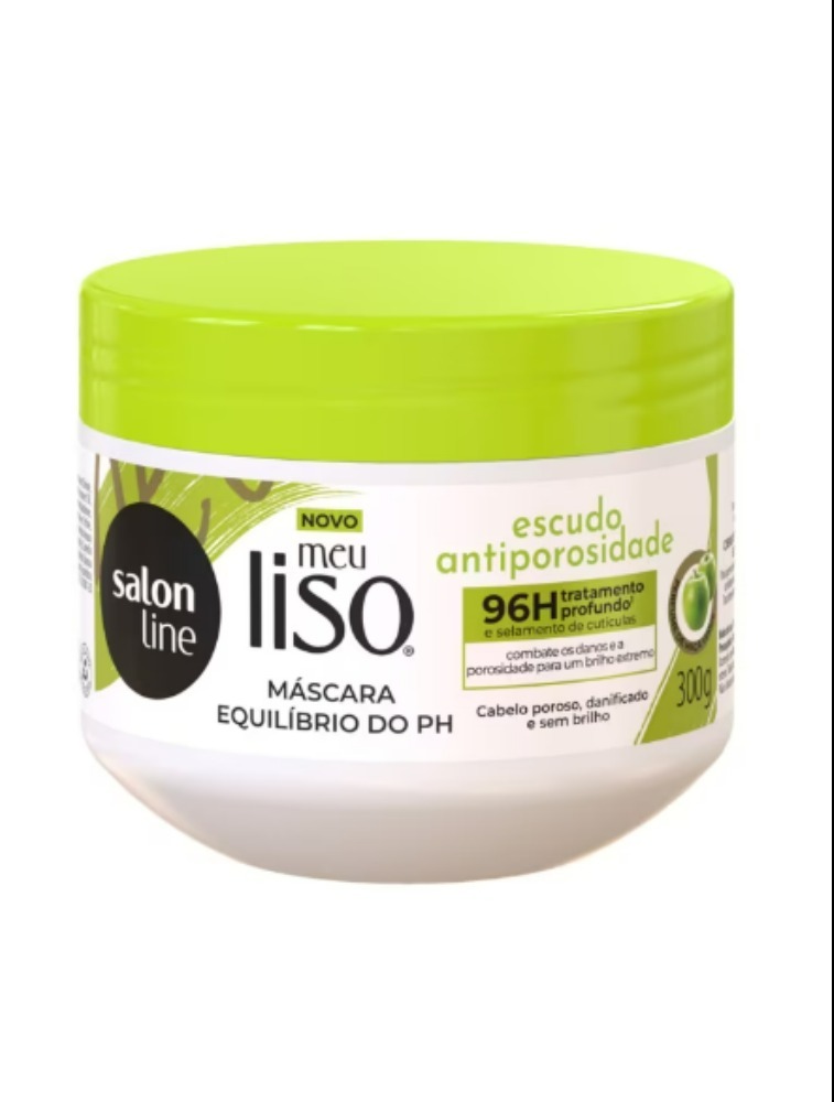 A Máscara Equilíbrio do pH Meu Liso Escudo Antiporosidade trata intensamente os fios, deixando-os macios e sedosos. Além disso, garante 96h de tratamento profundo e selamento das cutículas.